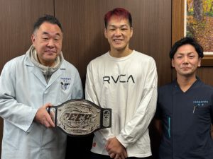 11/2(日)に東京で行われましたDEEPライト級暫定王者決定戦で見事勝利しチャンピオンとなった「大原樹理選手」が本校に来校していただきました!